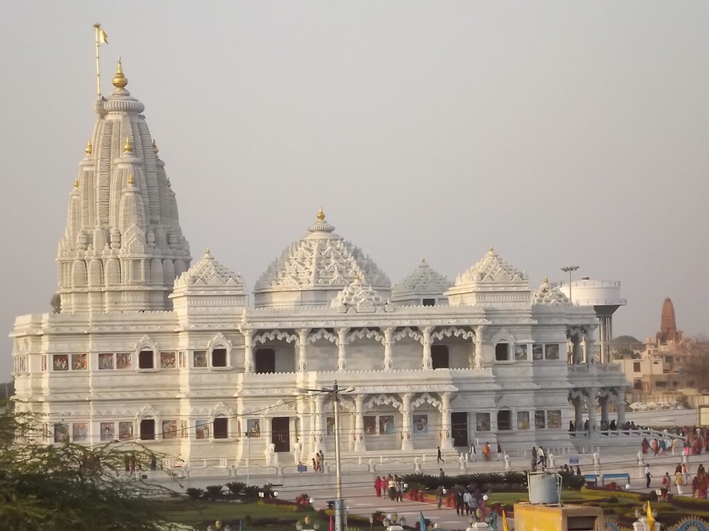Prem Mandir in Vrindavan, Uttar Pradesh, is a magnificent white marble temple dedicated to Lord Krishna and Radha, built under the guidance of Jagadguru Shri Kripaluji Maharaj. A stunning blend of traditional Hindu architecture and modern craftsmanship, the temple features intricate carvings that beautifully depict scenes from Krishna’s life, including the Ras Leela and the lifting of Govardhan Hill. Its two-story structure houses the deities of Radha-Krishna on the first floor and Sita-Ram on the second, surrounded by lush gardens, artistic pathways, and vibrant musical fountains that create a serene and divine atmosphere, especially when illuminated at night. A visit to Prem Mandir with Excursion to India offers a spiritually enriching and visually captivating experience, making it one of the must-visit landmarks in Vrindavan.